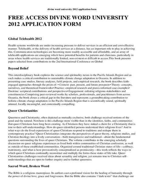 Read Online divine word university 2012 application form Epub BookBoon
